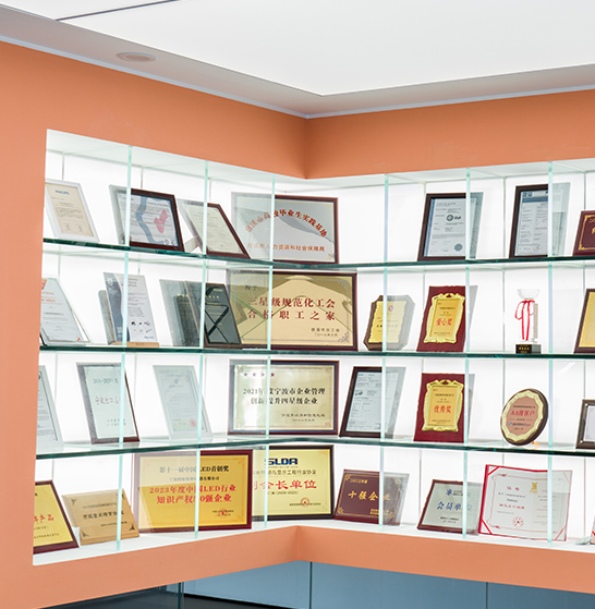 Perusahaan ini memiliki gelar kehormatan Usaha Kecil dan Menengah Sains dan Teknologi Provinsi Zhejiang, Usaha Awan Provinsi Zhejiang, Stasiun Kerja Pascadoktoral Provinsi Zhejiang, Usaha "Spesialis dan Baru" Kota Ningbo, Pusat Teknologi Rekayasa Kota Ningbo, Perusahaan Terdaftar Pusat Bursa Ekuitas Kota Ningbo, Pabrik Hijau Kota Cixi, dan 50 Hasil Per Acre Teratas Kota Cixi. Perusahaan ini memiliki 123 paten dari berbagai jenis, merupakan unit anggota Komite Standardisasi Peralatan Penerangan Tiongkok, berpartisipasi dalam 2 standar nasional dan 7 standar kelompok, memiliki laboratorium saksi TUV dan SGS, dan telah mendirikan pusat penelitian dan pengembangan bersama untuk produk pencahayaan cerdas dan basis magang "industri-universitas-penelitian" dengan Universitas Teknologi Terapan Shanghai.